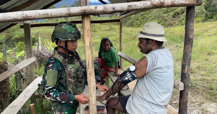 PUNCAK - Di tengah tantangan geografis yang ekstrem, semangat pengabdian Satgas Yonif 142/Ksatria Jaya tak pernah padam. Melalui inisiatif mulia bertajuk AKSARA (Aksi Ksatria Sehat Untuk Rakyat), personel Pos Agengen di Distrik Yugumuak, Kabupaten Puncak, kembali membawa harapan baru bagi warga setempat. Pada Senin (8/12/2025), tim medis Satgas menggelar layanan kesehatan keliling, menunjukkan komitmen tak tergoyahkan untuk menjangkau mereka yang terpencil.