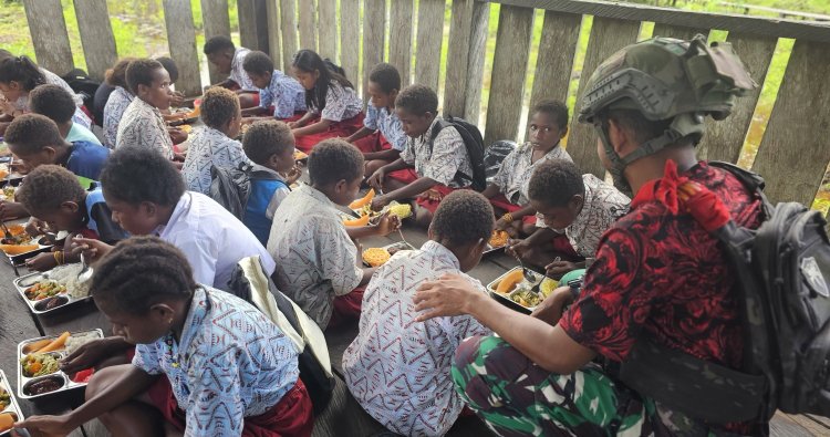 ASMAT - Di tengah bentangan alam Asmat yang memesona namun penuh tantangan, sebuah inisiatif hangat hadir dari para prajurit Satgas Pamtas RI-PNG Mobile Yonif 733/Masariku. Bukan dengan kekuatan senjata, melainkan dengan sentuhan empati dan sajian makanan bergizi, mereka menanamkan harapan baru bagi generasi penerus di tanah perbatasan.