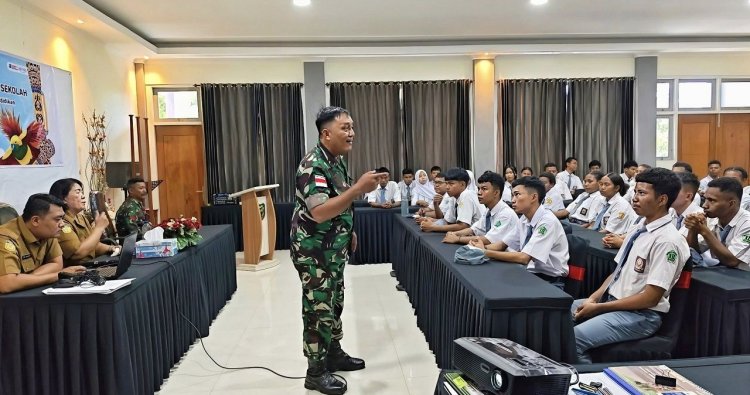 Jayapura – Tiga orang Bintara Pembina Desa (Babinsa) Koramil 1701-03/Abepura yang dipimpin oleh Sertu Sultan melaksanakan kegiatan pemberian materi dan pengenalan Kegiatan Korps Kadet Republik Indonesia (KKRI) kepada para siswa-siswi SMKN 2 Kotaraja, Senin (20/10/2025).