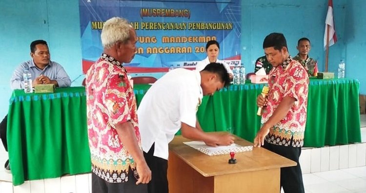 Nampak hadir Kepala Distrik Ulilin Junaidi, S.IP., M.AP., Ketua Bamuskam Bapak Panut, Danpos Simpang PNG Satgas Pamtas Kapten Inf Mufti, Sekretaris Kampung Mandekman Bapak Sarkam, P3MD Kampung Mandekman Bapak M. Slamet dan Aparat Kampung Mandekman serta Para Ketua RT/RW Kampung Mandekman.