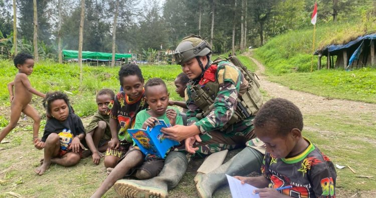 PUNCAK - Di tengah keterbatasan akses pendidikan di pelosok Papua Pegunungan, kepedulian luar biasa datang dari personel TNI. Satuan Tugas Pengamanan Perbatasan (Satgas Pamtas) RI-PNG Yonif 732/Banau tak tinggal diam. Melalui program inovatif bertajuk “Papua Melek”, para prajurit ini rela turun tangan menjadi pendidik bagi anak-anak di Kampung Jampul, Distrik Beoga, Kabupaten Puncak.