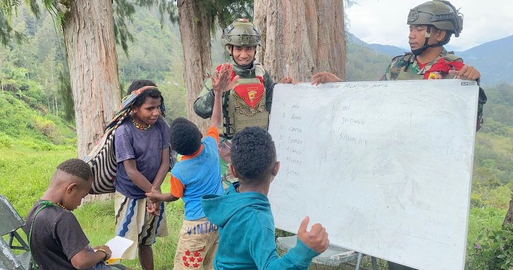 PUNCAK - Di tengah sunyi pedalaman Papua, tepatnya di Distrik Beoga, Kabupaten Puncak, sebuah kisah inspiratif tentang pendidikan terbentang. Kampung Dangbet, yang dulunya dilanda kekosongan guru, kini kembali berdenyut dengan semangat belajar. Personel Pos Dangbet dari Satgas Pamtas RI–PNG Yonif 732/Banau secara sukarela mengambil peran tak terduga: mengubah peran dari penjaga perbatasan menjadi pendidik di garis depan. Rabu (26/11/2025) menjadi saksi dimulainya program yang tak hanya mengisi ruang kelas yang kosong, tetapi juga mengisi hati anak-anak Papua dengan harapan baru.