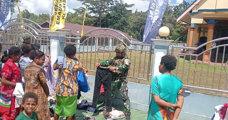 PAPUA BARAT DAYA - Di Kampung Susumuk, Papua Barat Daya, suasana khidmat ibadah Minggu di Gereja GKI Bukit Harapan tak berhenti di pintu gereja. Usai lantunan doa penutup bergema, warga berbondong-bondong merasakan 'ibadah kedua' yang penuh kehangatan. Kali ini, bukan lantunan ayat suci yang mengalun, melainkan deretan antrean sukacita yang tak terhingga. Satuan Tugas Pengamanan Perbatasan (Satgas Pamtas) RI–PNG Mobile Yonif 10 Marinir/Surabaya (SBY) hadir membawa kabar gembira, membagikan puluhan paket pakaian layak pakai kepada keluarga yang membutuhkan, Minggu (30/11/2025).