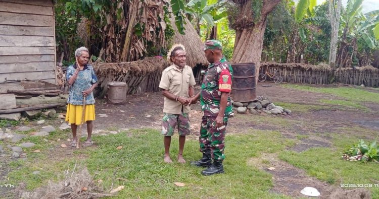 Wamena – Guna mempererat silaturahmi dengan warga binaan, Danramil 1702-02/Assologaima Letda Inf Ramli melaksanakan kegiatan anjangsana di Kampung Algonik, Distrik Pyramid, Kabupaten Jayawijaya, Kamis (09/10/2025).