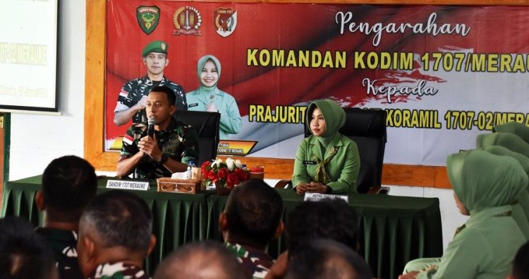 Merauke - Komandan Kodim 1707/Merauke Letkol Czi Dili Eko Setyawan, S.Ak., M.Han didampingi Ketua Persit KCK Cabang XVI Kodim 1707/Merauke Ny. Asti Dili Eko Setyawan melaksanakan kunjungan kerja ke Koramil 1707-02/Kota Merauke yang berlokasi di Jln. Angkasa, Kelurahan Kelapa Lima, Distrik Merauke, Kab. Merauke - Provinsi Papua Selatan yang disambut langsung oleh Danramil Merauke Mayor Inf La Haruni. Kamis (22/1/26).