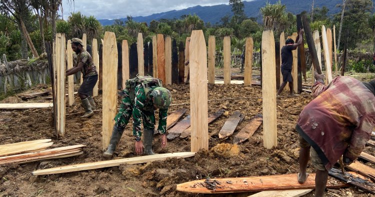 LANNY JAYA - Di tengah bentangan alam Papua Pegunungan yang memukau namun menantang, semangat kebersamaan terjalin erat antara personel Satgas Yonif 408/Suhbrastha (Sbh) dan masyarakat Kampung Nenggeagin. Kamis (8/1/2026) menjadi saksi bisu dari sebuah aksi nyata yang melampaui tugas pokok pengamanan, yakni pembangunan honai—rumah adat yang menjadi denyut nadi kehidupan sosial masyarakat setempat.