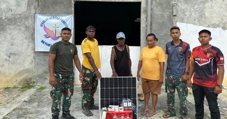 SARMI, PAPUA (1 Desember 2025) – Dalam rangka menyambut sukacita Hari Raya Natal tahun 2025 serta memperkokoh kemanunggalan TNI dengan rakyat, Satuan Yonif TP 809/NTM menyalurkan bantuan berupa satu set instalasi Pembangkit Listrik Tenaga Surya (Solar Cell) kepada gereja-gereja yang berada di wilayah pedalaman Kabupaten Sarmi, Provinsi Papua.