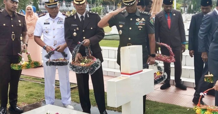 Kasdim 1701/Jayapura, Letkol Arm Mustafa Lara, S.T., M.IP., hadir mewakili Komandan Kodim 1701/Jayapura, bergabung dalam rombongan ziarah bersama unsur Forum Koordinasi Pimpinan Daerah (Forkopimda), TNI-Polri, organisasi wanita, serta perwakilan instansi pemerintah dan lembaga terkait lainnya. Sekitar 100 peserta mengikuti upacara yang berlangsung khidmat dan penuh makna tersebut.