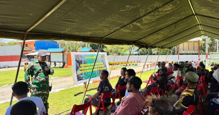 Wamena - Dalam upaya memberdayakan masyarakat di Kampung Lantipo, Distrik Wamena, Kabupaten Jayawijaya, Kodim 1702/Jayawijaya menggelar sosialisasi program-program unggulan pemerintah, di antaranya program Makan Bergizi Gratis (MBG) dan Koperasi Merah Putih. Kegiatan yang berlangsung di Balai Desa Kampung Lantipo ini dihadiri sekitar 150 peserta, termasuk Kepala Kampung Lantipo, Hengki Heselo, serta masyarakat setempat. Kamis (16/10/2025) Sosialisasi dimulai dengan penyampaian materi dari Drs. Karel Tehupuring, M.M., Ketua Tim Sosialisasi dari Dinas DPMPTSP Kabupaten Jayawijaya, yang mengajak masyarakat untuk memahami manfaat Koperasi Merah Putih. Ia menjelaskan bahwa koperasi ini bertujuan meningkatkan kesejahteraan masyarakat, menciptakan lapangan kerja, dan memperkuat ekonomi lokal melalui prinsip gotong royong dan inklusi keuangan. Kapten Inf. Boy Richard Sitaniapessy, Pasintel Kodim 1702/Jayawijaya, turut memberikan apresiasi atas antusiasme masyarakat yang hadir dalam acara tersebut. “Kami, Kodim 1702/Jayawijaya, sangat mengapresiasi antusiasme masyarakat Kampung Lantipo dalam menyambut program-program pemerintah ini. Sebagai bagian dari masyarakat dan aparat keamanan, kami selalu berupaya mendukung setiap langkah yang dapat meningkatkan kesejahteraan dan kemajuan daerah kita. Sosialisasi ini adalah bagian dari upaya kita bersama untuk memperkenalkan dan memastikan bahwa manfaat program-program pemerintah dapat dirasakan langsung oleh masyarakat, termasuk di Kampung Lantipo”, Ungkapnya. Melkias, panitia program MBG, menjelaskan bahwa program ini melibatkan masyarakat lokal dalam proses penyediaan makanan, dengan harapan dapat meminimalisir kekhawatiran tentang kualitas dan keamanannya. Ia menekankan bahwa keterlibatan langsung anak-anak asli daerah dalam program ini diharapkan dapat meningkatkan kepercayaan masyarakat terhadap manfaat program tersebut. Hengki Heselo, Kepala Kampung Lantipo, juga menambahkan bahwa keterlibatan ibu-ibu dalam pengolahan makanan bergizi gratis ini bukan hanya akan meningkatkan kualitas program, tetapi juga dapat merasakan manfaat ganda, yaitu meningkatkan kesejahteraan ekonomi masyarakat sekaligus memperkuat ketahanan pangan di kampung mereka. Masyarakat Lantipo memberikan masukan positif, termasuk saran agar bahan makanan yang digunakan dalam program MBG dibeli langsung dari ibu-ibu setempat. Melkias mengapresiasi saran tersebut dan berjanji akan berkoordinasi dengan Dinas Koperasi untuk memastikan bahan makanan seperti sayuran diperoleh dari koperasi lokal yang dikelola oleh masyarakat.