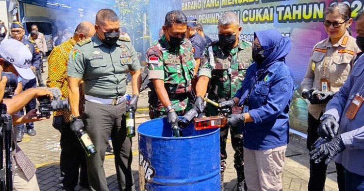 Jayapura - Bea Cukai Jayapura memusnahkan barang bukti hasil penindakan sepanjang tahun 2025, Kamis (18/12/2025). Barang yang dimusnahkan terdiri dari 24.640 batang rokok ilegal dan 2.430 liter minuman keras (miras) yang dapat merusak generasi muda.