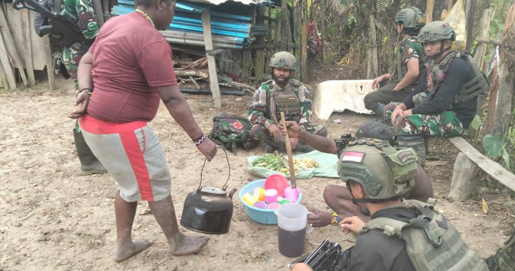 Di tengah kesejukan alam pegunungan, momen sederhana namun penuh makna tercipta. Para prajurit Satgas duduk bersama warga di pelataran honai, berbagi cerita sembari menyeruput kopi panas. Tanpa ada jarak dan formalitas, obrolan santai mengalir, membangun rasa saling percaya dan mengukuhkan kebersamaan layaknya keluarga.