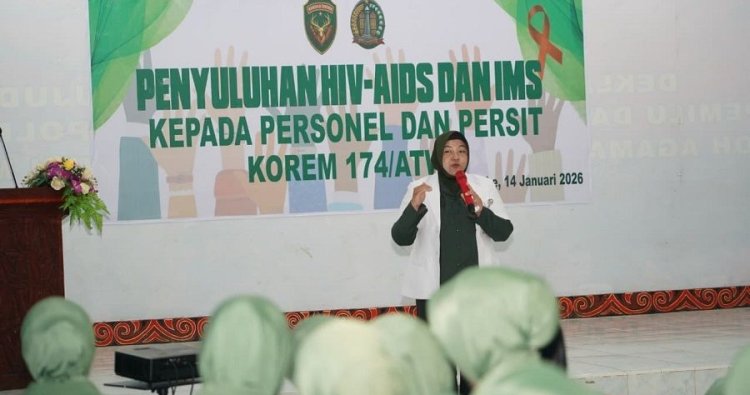 Merauke – Korem 174/Anim Ti Waninggap (ATW) menyelenggarakan penyuluhan Human Immunodeficiency Virus (HIV) dan Infeksi Menular Seksual (IMS) bertempat di Aula Kodim 1707/Merauke, Provinsi Papua Selatan(14/1/2026), diikuti sekitar 100 peserta yang terdiri dari prajurit TNI AD dan Persit Kartika Chandra Kirana jajaran Korem 174/ATW serta personel Kodim jajaran.