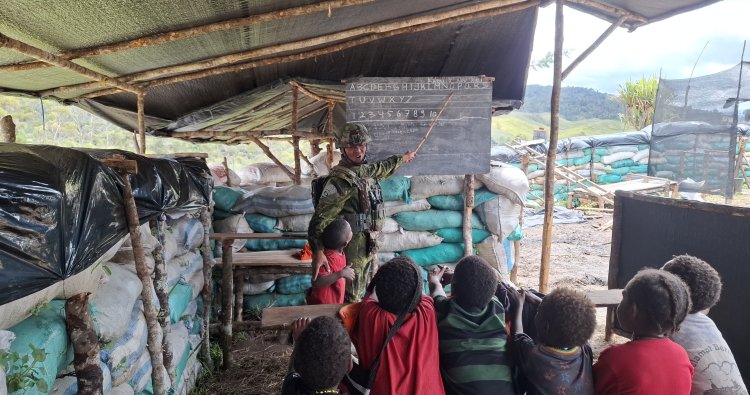 Sekolah darurat ini dibangun dengan material sederhana, hasil kolaborasi erat antara prajurit TNI dan warga kampung. Lebih dari sekadar membangun fisik, para prajurit ini juga dengan sukarela menjadi guru. Mereka mengajarkan baca, tulis, hitung, hingga memberikan pemahaman tentang kebangsaan dan motivasi kepada anak-anak.
