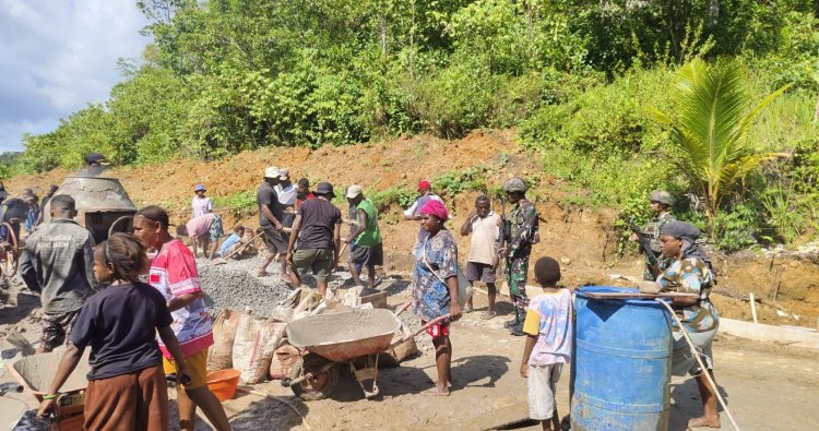 PAPUA BARAT DAYA - Di jantung perbatasan RI-PNG, tepatnya di Kampung Krus, Papua Barat Daya, semangat kebersamaan membahana saat Satgas Pamtas RI–PNG Mobile Yonif 10 Marinir/SBY merangkul masyarakat dalam aksi gotong royong pada Senin (15/12/2025). Inisiatif ini bukan sekadar kegiatan fisik, namun denyut nadi kemanunggalan TNI dengan rakyat yang terus terjaga, mempererat tali silaturahmi sekaligus meningkatkan kualitas hidup warga.