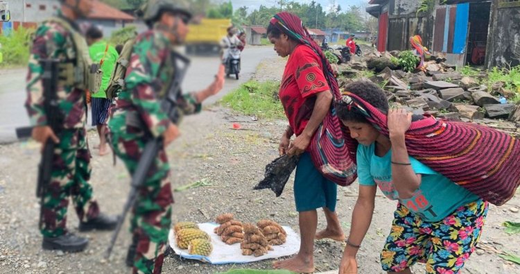 Kehangatan interaksi antara prajurit dan masyarakat di Pasar Dekai menggambarkan harmoni dan kemanunggalan TNI-rakyat, yang menjadi fondasi utama stabilitas keamanan di Papua Pegunungan.