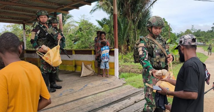 MAYBRAT - Kehangatan pengabdian TNI Angkatan Laut merambah hingga pelosok negeri, kali ini menyentuh hati warga Kampung Aisa di perbatasan Indonesia–Papua Nugini. Satuan Tugas Pengamanan Perbatasan (Satgas Pamtas) RI–PNG Mobile Yonif 10 Marinir/SBY tak hanya hadir menjaga kedaulatan, namun juga membawa senyum melalui aksi kemanusiaan yang menyentuh.