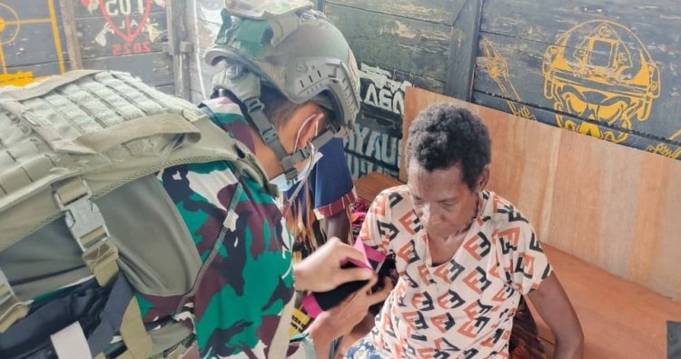 YAHUKIMO - Ditengah kehangatan pegunungan Papua Pegunungan, tepatnya di Kampung Logpon, Kabupaten Yahukimo, senyum lebar terpancar dari wajah warga. Satuan Tugas Pengamanan Perbatasan (Satgas Pamtas) RI-PNG Mobile Yonif 1 Marinir pada Senin, (17/11/2025), menggelar kegiatan pelayanan kesehatan yang menjadi oase bagi masyarakat setempat. Program teritorial ini bukan sekadar pemeriksaan medis, melainkan jembatan kokoh yang memperkuat ikatan tak terpisahkan antara TNI dan rakyat di garis depan negeri.