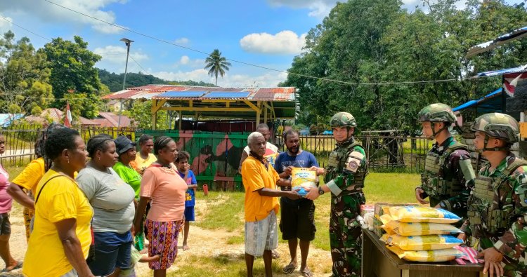 PAPUA BARAT DAYA - Di jantung terpencil perbatasan Papua Barat Daya, ragam kepedulian mengalir dari para ksatria penjaga kedaulatan. Prajurit Satgas Pamtas RI–PNG Mobile Yonif 10 Marinir/SBY tak hanya mengemban tugas menjaga garis batas negara, namun juga merajut kehangatan kemanusiaan melalui aksi sederhana namun bermakna. Paket sembako dibagikan kepada warga Kampung Kamat, Distrik Aifat Timur, sebagai wujud nyata kepedulian terhadap masyarakat yang berjuang di tengah keterbatasan.