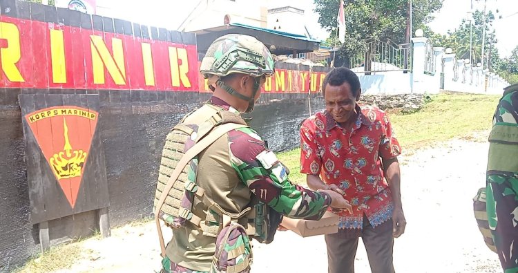 MAYBRAT - Di hamparan tanah perbatasan RI-PNG, tepatnya di Kampung Susumuk, Kabupaten Maybrat, Papua Barat Daya, semangat kepedulian terpancar dari prajurit Satgas Pamtas Mobile Yonif 10 Marinir/SBY. Pada Jumat (26/12/2025), mereka tak hanya menjaga kedaulatan negeri, namun juga menyentuh hati masyarakat melalui kegiatan sosial bertajuk 'Jumat Berkah'. Ratusan nasi kotak dibagikan, menjadi wujud nyata kepedulian terhadap kebutuhan sehari-hari warga yang beraktivitas di sekitar kampung serta para pengguna jalan yang melintas di depan pos mereka.
