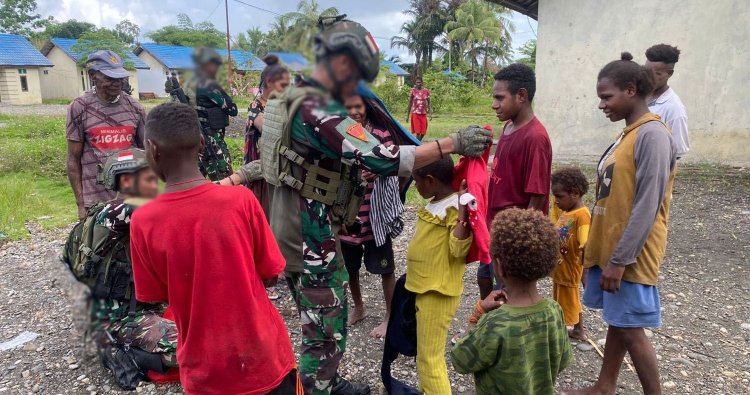YAHUKIMO - Di tengah riuhnya kehidupan perbatasan, prajurit TNI dari Pos Marinir Halabok, Satgas Pamtas RI-PNG Mobile Yonif 1 Marinir, tak hanya hadir sebagai penjaga keamanan. Pada Jumat (7/11/2025), mereka merajut kehangatan di Kampung Paradiso, Distrik Dekai, Kabupaten Yahukimo, Provinsi Papua Pegunungan, melalui kegiatan Komunikasi Sosial (Komsos) yang menyentuh hati. Tak sekadar berbincang, bingkisan pakaian layak pakai pun dibagikan, menjadi jembatan kasih antara prajurit dan warga.
