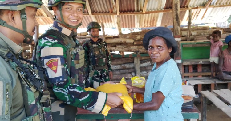Marinir Yonif 10/SBY Tebar Kebaikan di Perbatasan Maybrat