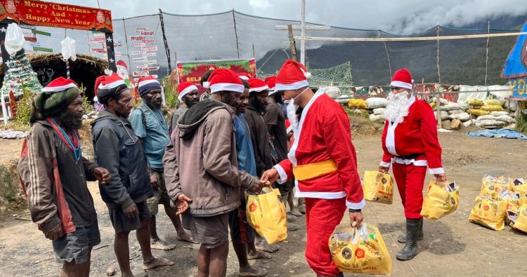 Puncak keceriaan terjadi saat Santa Claus, diiringi helikopter Satgas, mendarat di tengah kampung binaan. Sambutan antusias, terutama dari anak-anak yang berlarian riang, mengiringi langkah Santa. Ia tak lupa berkeliling membagikan bingkisan Natal langsung ke setiap honai, membawa senyum lebar dan haru bahagia bagi seluruh warga.