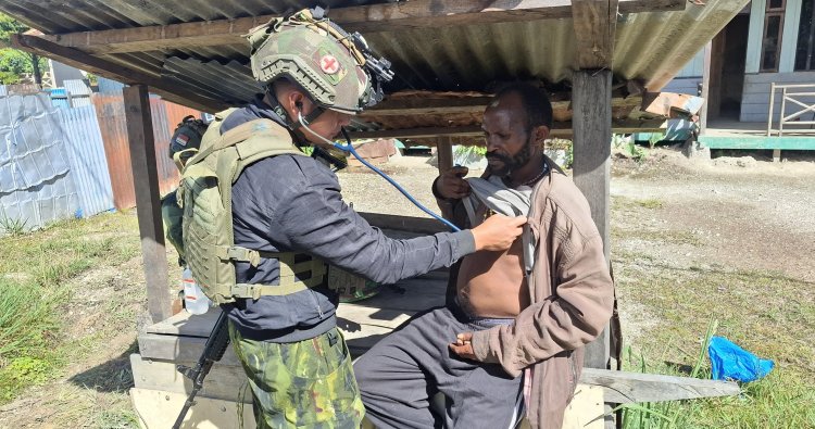 Antusiasme warga begitu terasa menyambut kehadiran tim kesehatan dari Satgas. Terlihat sebuah pemandangan menyentuh ketika seorang prajurit medis dengan penuh kasih merawat luka seorang anak Papua di pinggir jalan kampung. Sikap humanis ini menegaskan bahwa TNI hadir bukan sekadar sebagai penjaga, melainkan sebagai pelayan kemanusiaan yang tulus di setiap sudut negeri.