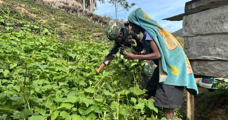 LANNY JAYA - Di tengah hijaunya hamparan kebun yang menjadi urat nadi kehidupan di Kampung Wamitu, Distrik Goa Balim, Kabupaten Lanny Jaya, personel Satgas Yonif 408/Sbh tak sekadar menjalankan tugas pengamanan. Pada Senin (19/1/2026), mereka memilih untuk menyapa dan berinteraksi langsung dengan para Mama Papua yang tengah tekun mengolah tanah.