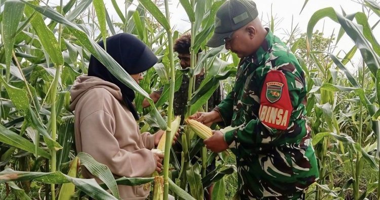 Keerom – Dalam rangka mendukung program ketahanan pangan nasional, Babinsa Koramil 1701-23/Skanto Koptu Agunawan turut membantu proses panen jagung manis di lahan milik Ibu Aprilia, yang berlokasi di Kampung Intaimelyan, Distrik Skanto, Kabupaten Keerom, pada Jum'at (21/11/2025).
