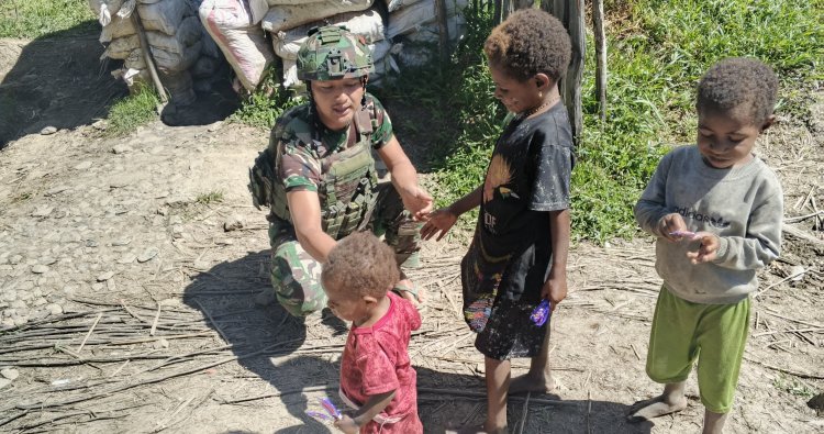 INTAN JAYA - Di tengah kehangatan pegunungan Intan Jaya, tepatnya di Kampung Bilai, Distrik Homeyo, sebuah pemandangan tak terduga menghadirkan gelak tawa dan sorak sorai. Personel Satgas Pamtas RI–PNG Mobile Yonif 113/Jaya Sakti (JS) Pos (TK) Bilai pada Senin (5/1/2026) memilih cara yang sederhana namun sarat makna: membagikan permen kepada anak-anak setempat. Momen ini bukan sekadar pembagian suguhan manis, melainkan sebuah jembatan emosional yang terjalin erat, menunjukkan sisi humanis para prajurit TNI.