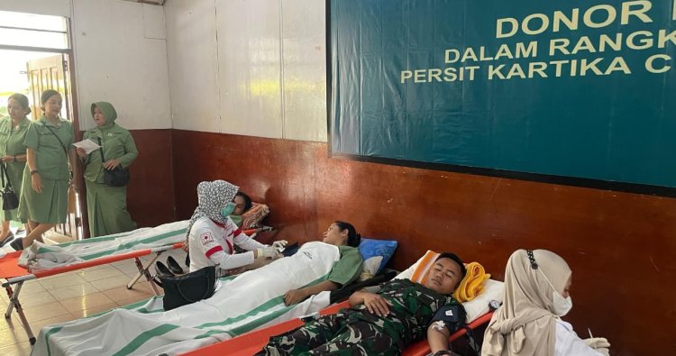 Wamena, - Yonif 756/WMS dan Persit Kartika Chandra Kirana Cabang XL Yonif 756/WMS mengikuti kegiatan bakti sosial donor darah dalam rangka HUT Ke-80 Persit Kartika Chandra Kirana Pengurus Daerah Kodam XVII/Cenderawasih yang diikuti oleh personel Yonif 756/WMS yang dilaksanakan di Aula Makodim 1702/Jayawijaya, Jl. Yos Sudarso, Distrik Wamena, Kab. Jayawijaya, Prov. Papua Pegunungan, Selasa (03/02/2026).