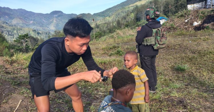 INTAN JAYA - Di tengah hamparan hijau Intan Jaya, Papua Tengah, sebuah inisiatif sederhana namun penuh makna hadir menyapa warga. Personel Pos Maya dari Satgas Pamtas RI–PNG Mobile Yonif 113/Jaya Sakti tak hanya hadir menjaga keamanan, tetapi juga menyentuh hati masyarakat melalui layanan cukur rambut gratis. Kegiatan yang dilangsungkan di Kampung Ogeapa dan Ngagemba, Distrik Homeyo, pada Jumat (2/1/2026) ini menjadi wujud nyata pendekatan teritorial yang mengedepankan aspek kemanusiaan.