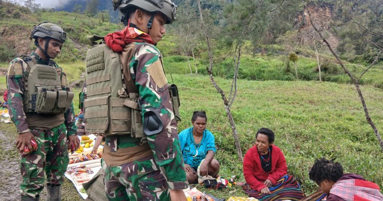 PUNCAK - Kehangatan menyelimuti Kampung Marilaukin, Papua Tengah, saat personel Pos Marilaukin Satgas Pamtas RI–PNG Yonif 732/Banau menggagas aksi sosial ekonomi bertajuk Borong Hasil Tani pada Sabtu, (15/11/2025). Inisiatif ini tak hanya membawa senyum bahagia, tetapi juga membuka harapan baru bagi para mama Papua yang menggantungkan hidupnya pada hasil kebun di wilayah perbatasan yang strategis.