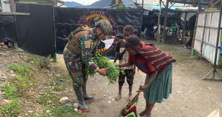 Sejak pagi, Titik Kuat (TK) Mamba Bawah, TK Silatuga, TK J2 Kout, dan TK Mamba Kotis diramaikan oleh kehadiran para prajurit yang menyambut mama-mama Papua di jalur menuju Pasar Yokatapa. Bukan untuk keperluan pemeriksaan keamanan, melainkan untuk memborong hasil bumi seperti umbi-umbian, kol, sawi, hingga aneka sayuran gunung yang mereka bawa.