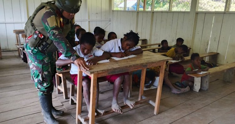 PUNCAK - Di tengah hamparan keindahan alam Papua Pegunungan, tepatnya di Kampung Marilakuin, Distrik Wangbe, Kabupaten Puncak, sebuah inisiatif mulia tengah bergulir. Para prajurit dari Pos Marilakuin, Satgas Pamtas RI-PNG Yonif 732/Banau, tak hanya menjaga kedaulatan negeri, namun juga hadir sebagai garda terdepan dalam mencerdaskan anak bangsa.