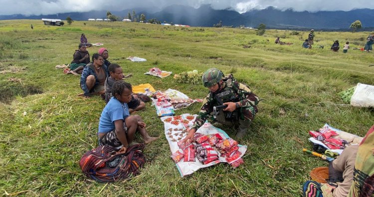 Sejak mentari pagi mulai menyapa, halaman kampung seketika ramai oleh kehadiran para mama Papua. Tangan-tangan terampil mereka membawa hasil kebun yang menjadi tumpuan hidup: ubi jalar yang ranum, keladi yang segar, aneka sayuran hijau, hingga rempah-rempah khas Bumi Cenderawasih. Sorot mata mereka berbinar menyambut kedatangan para prajurit Satgas, karena bagi mereka, kegiatan ini bukan sekadar transaksi jual beli, melainkan sebuah pengakuan dan penghargaan atas peluh yang tertumpah di ladang.