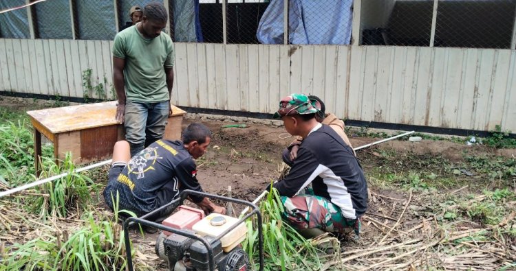 Wamena – Program TNI Manunggal Membangun Desa (TMMD) ke-126 yang dilaksanakan oleh Kodim 1702/Jayawijaya di Kampung Algorik, Distrik Piramid, menunjukkan progres yang sangat menggembirakan. Pembuatan sumur bor sebagai salah satu upaya penyediaan air bersih bagi masyarakat setempat telah berhasil menemukan sumber air yang cukup melimpah. Kamis (16/10/2025).