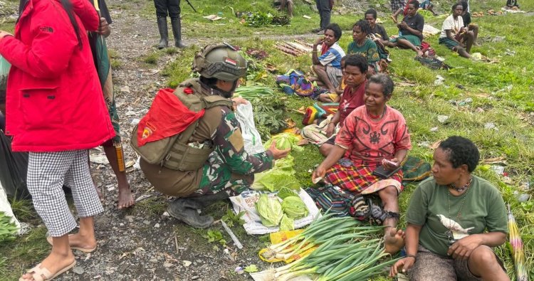 PUNCAK - Di tengah keindahan lereng hijau Distrik Beoga, Kabupaten Puncak, Papua Tengah, sebuah pemandangan mengharukan tersaji. Para prajurit Pos Beoga dari Satgas Pamtas RI-PNG Yonif 732/Banau tak hanya hadir menjaga keamanan, tetapi juga menyentuh denyut nadi ekonomi warga melalui program inovatif “ROSITA” (Borong Hasil Tani). Pada Selasa (11/11/2025), senyum hangat terpancar saat para prajurit dengan ramah memborong hasil panen sayur-mayur, singkong, dan ubi yang tertata rapi di tikar pandan para petani.