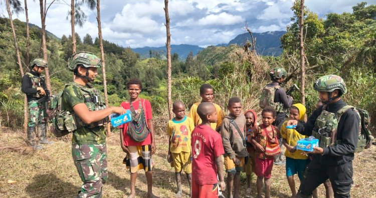 INTAN JAYA - Senyum merekah di wajah puluhan anak Kampung Ogeapa dan Ngagemba, Distrik Sugapa, Intan Jaya, Papua Tengah, pada Jumat, (28/11/2025). Di tengah tantangan medan dan keterbatasan akses pangan di perbatasan RI-PNG, personel Satgas Pamtas RI–PNG Mobile Yonif 113/Jaya Sakti (113/JS) dari Pos Maya hadir membawa kehangatan tak hanya dalam bentuk roti, namun juga pendekatan yang menyentuh hati.