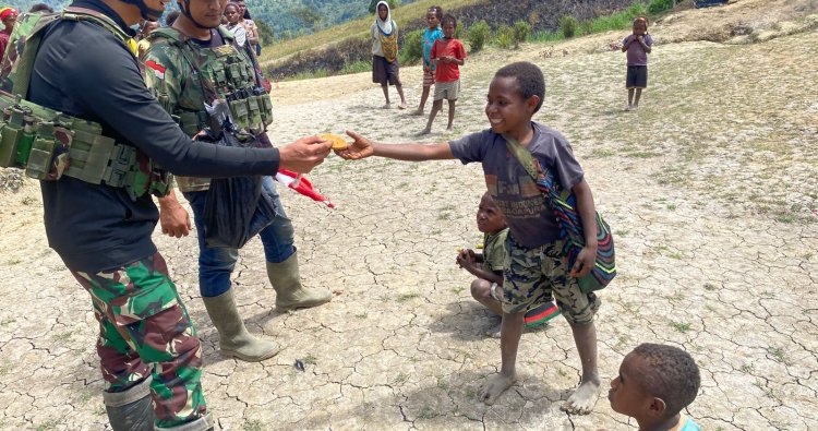 INTAN JAYA - Senyum polos puluhan anak di Kampung Zanepa, Distrik Beoga, Intan Jaya, Papua Tengah, merekah saat menerima bingkisan roti dari personel Satuan Tugas Pengamanan Perbatasan (Satgas Pamtas) RI-PNG Mobile Yonif 113/Jaya Sakti (JS). Pada Kamis (27/11/2025), personel yang bertugas di Titik Kuat (TK)/Pos Zanepa ini tak hanya menjalankan misi menjaga kedaulatan negara, tetapi juga menyentuh hati generasi penerus bangsa melalui aksi sederhana namun bermakna.
