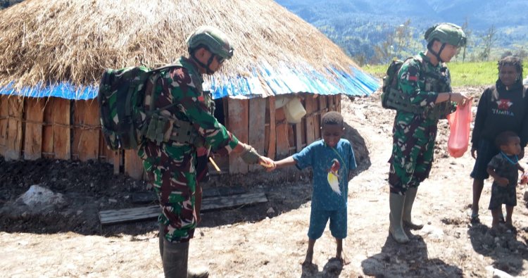 Sorak sorai riang anak-anak seketika membelah kesunyian saat pasukan berseragam loreng itu melangkah masuk. Di depan tungku honai yang hangat, terjalin dialog tulus antara tentara dan warga, sebuah momen yang menggambarkan kedalaman pendekatan TNI yang mengutamakan soft power kemanusiaan, membangun kedekatan tanpa sekat.