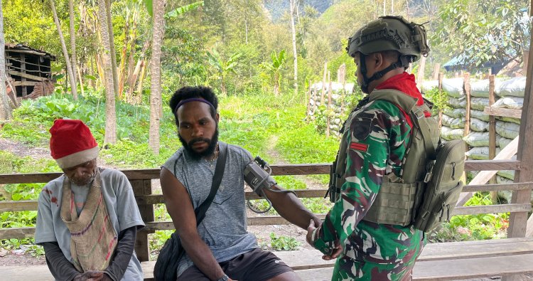 PUNCAK - Di tengah keterbatasan akses fasilitas kesehatan formal, Satuan Tugas Pengamanan Perbatasan (Satgas Pamtas) RI-PNG Yonif 732/Banau menghadirkan angin segar melalui program inovatif 'Sahabat Banau'. Kali ini, personel Pos Julukoma tidak ragu melangkah lebih jauh, mendatangi langsung kediaman warga Kampung Julukoma, Distrik Beoga, Kabupaten Puncak, pada Rabu (28/1/2026), untuk memberikan pelayanan kesehatan langsung ke pintu rumah mereka.