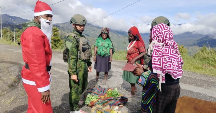 INTAN JAYA - Suasana hangat menyelimuti ruas jalan poros Kampung Sugapa, Kabupaten Intan Jaya, Papua Tengah, pada Selasa (23/12/2025). Di tengah euforia menjelang perayaan Natal, prajurit Satgas Yonif 631/Antang tampil tak ubahnya "Santa Claus" bagi mama-mama Papua. Melalui Program Rosita (Borong Hasil Tani), mereka memborong langsung hasil pertanian warga, sebuah inisiatif mulia untuk mendongkrak ekonomi kerakyatan di wilayah pegunungan yang penuh tantangan ini.