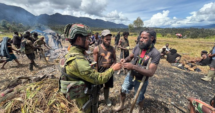 LANNY JAYA - Di tengah kesedihan mendalam atas berpulangnya mendiang Nai Talenggen, Kampung Nenggeagin, Kabupaten Lanny Jaya, Papua Pegunungan, pada Jum'at (21/11/2025) menjadi saksi bisu kehangatan persaudaraan. Upacara adat Bakar Batu yang khidmat tak hanya dihadiri warga, namun juga oleh prajurit TNI dari Satgas Yonif 408/Suhbrastha (Sbh) Pos Nenggeagin. Kehadiran mereka, berseragam loreng yang menyatu dengan pakaian adat, mengukuhkan ikatan emosional yang melampaui tugas penjagaan.