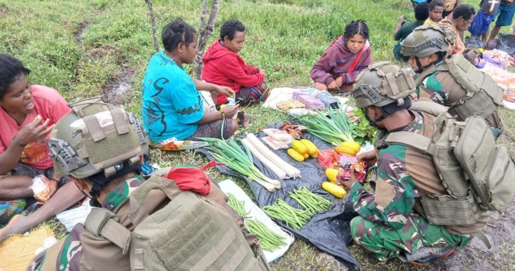 PUNCAK - Di tengah hamparan hijau Distrik Wangbe, Kabupaten Puncak, Papua Tengah, Satgas Pamtas RI-PNG Yonif 732/Banau tak henti mengukir cerita inspiratif. Kali ini, melalui program inovatif bernama 'Rosita' atau Borong Hasil Tani, mereka hadir langsung di Kampung Marilaukin, Kabupaten Puncak, pada Jumat (14/11/2025). Serda Risky Buamona bersama timnya dari Pos Marilaukin rela mendatangi lapak-lapak sederhana para mama-mama Papua, bukan untuk berjaga, melainkan untuk membeli hasil kebun mereka.