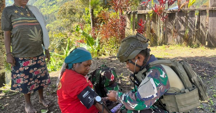 PUNCAK - Di tengah hamparan alam Papua Tengah yang memukau, namun seringkali menyulitkan akses, kehadiran prajurit TNI dalam Satgas Pamtas RI–PNG Mobile Yonif 732/Banau terasa begitu berarti. Pos Ambobera Satgas Banau tak tinggal diam, mereka menggagas program inovatif bernama “Pastoor”, sebuah akronim dari Pelayanan Kesehatan Door to Door, yang secara langsung menyentuh kehidupan warga Kampung Ambobera, Distrik Beoga, Kabupaten Puncak.