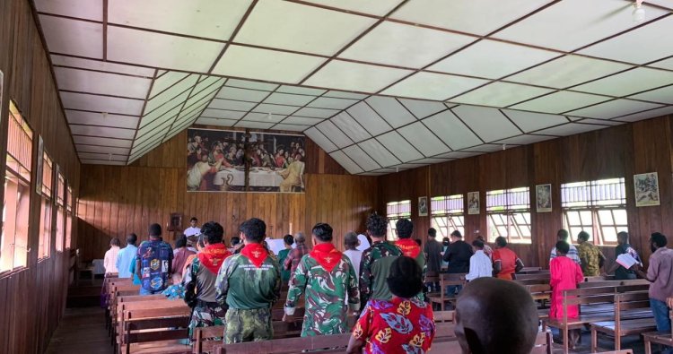 NDUGA - Di tengah denyut kehidupan Kampung Krepkuri, Distrik Krepkuri, Kabupaten Nduga, Papua, sebuah momen kehangatan terjalin pada Minggu (16/11/2025). Satuan Tugas Pengamanan Perbatasan (Satgas Pamtas) Mobile Yonif 733/Masariku tak hanya hadir sebagai penjaga, namun merangkul erat masyarakat lokal melalui kegiatan ibadah bersama. Momen sederhana ini menjadi jembatan hati, mempererat silaturahmi antara para prajurit dan jemaat setempat, menciptakan suasana kebersamaan yang menyentuh di tengah lanskap keamanan yang dinamis.