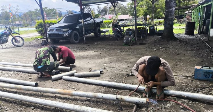 Wamena – Dalam rangka mendukung pengembangan sarana olahraga bagi masyarakat, Satgas TMMD ke-126 Kodim 1702/Jayawijaya melaksanakan kegiatan penyiapan tiang gawang yang akan diberikan kepada pemuda di Distrik Pyramid, Kabupaten Jayawijaya, Selasa (14/10/2025).