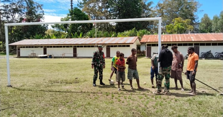 Wamena — Satgas TMMD Ke-126 Kodim 1702/Jayawijaya melaksanakan kegiatan positif dengan membangun tiang gawang sebagai sarana olahraga bagi pemuda di Kampung Algonik. Pembangunan fasilitas ini diharapkan dapat memberikan manfaat jangka panjang bagi masyarakat setempat.