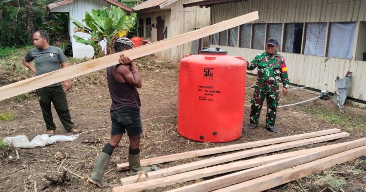Wamena - Satuan Tugas TNI Manunggal Membangun Desa (Satgas TMMD) ke-126 Kodim 1702/Jayawijaya terus menunjukkan progres nyata dalam pelaksanaan program pembangunan fisik, Salah satunya kegiatan yang tengah dikerjakan ialah penyiapan dan pemasangan tangki air sumur bor di lokasi sasaran TMMD, yang bertempat di Distrik Pyramid, Kab. Jayawijaya, Prov. Papua Pegunungan, Selasa ( 21/10/2025).